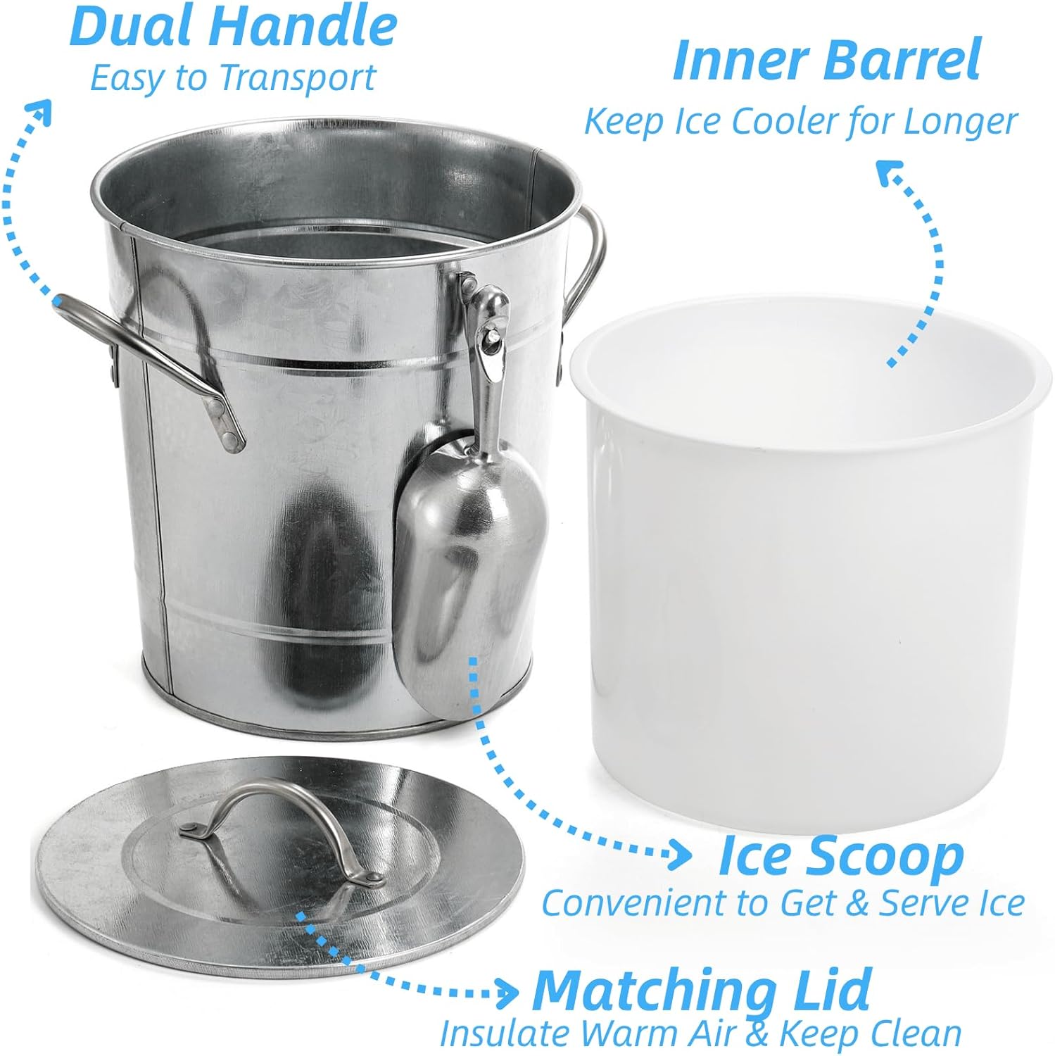 – Matching lid sits perfect to help keep the cold inside of the drink tub and the scoop makes it convenient to shovel the ice cube in and out of the tub, bringing you most pleasant experience while using the drink tub. And the removable inner barrel keeps the ice cooler for longer and adds more flexible while using the bucket