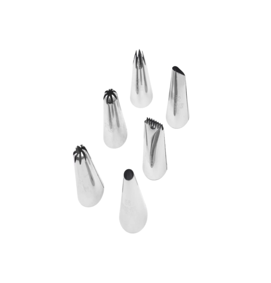 -Food Grade, stainless steel washable cake decorating set frosting icing piping bag tips with steel nozzle (6 PC Nozzle Set).