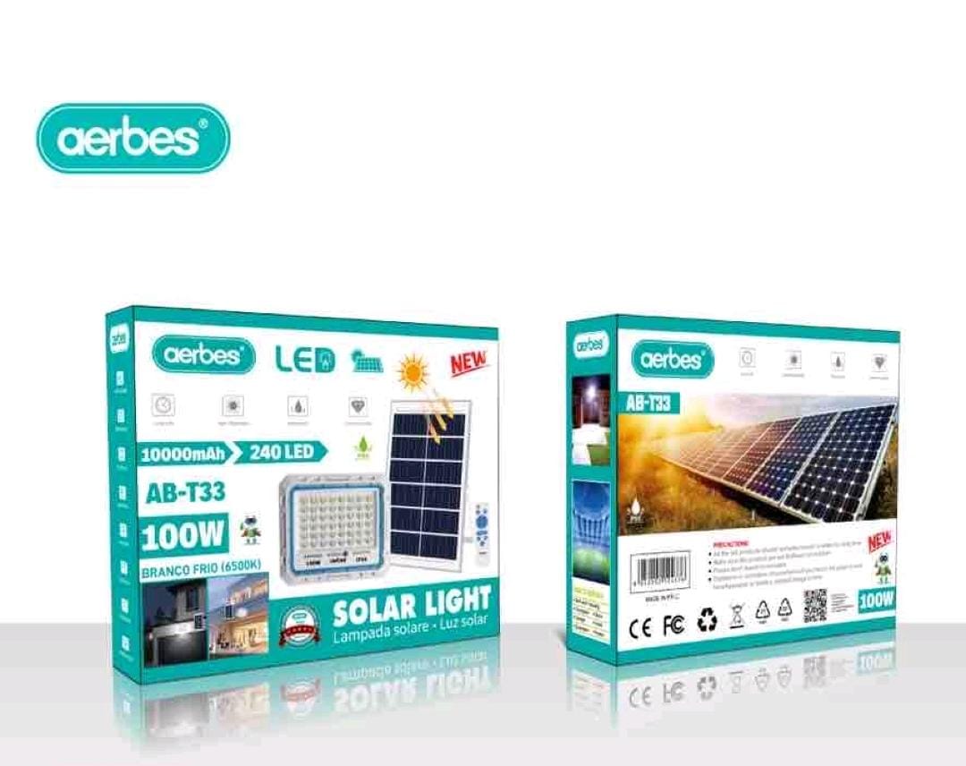 The Aerbes AB-T33 100W Solar Powered Flood Light is an energy-efficient, remote-controlled lighting solution for outdoor spaces, featuring a separate solar panel and a high-capacity 10000mAh battery for reliable, off-grid illumination.