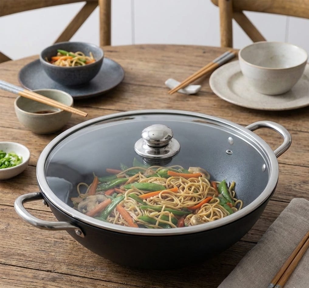 – Braising and Stewing: The wok is effective for slow-braising meats, fish, vegetables, soups, and stews.