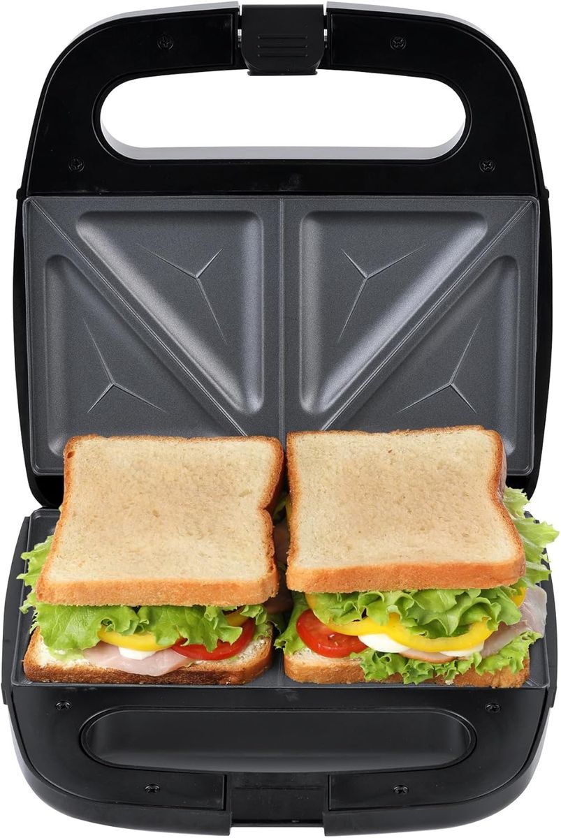 -Create delicious toasted sandwiches effortlessly with this 750W Sandwich Maker. Crafted with a durable non-stick coating for easy cleaning and perfectly sealed sandwiches every time.