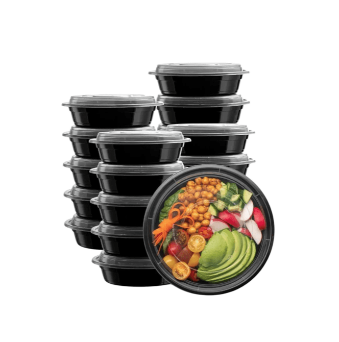 – These 750ml (18.5 x 5cm) black base container with see through lid are safe and easy to use. These meal prep containers are made from bpa, pvc and phthalate free materials and are 100% food safe. Easy opening is achieved with convenient flaps whilst keeping these meal storage containers watertight and leakproof when closed.